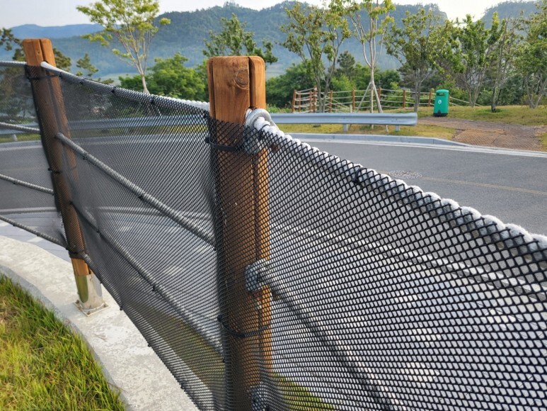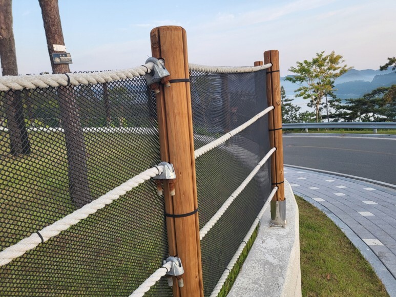 진도 쏠비치에 PE망으로 설치된 울타리입니다. 딱딱한 휀스보다 부드러움과 자연과 조회되는 느낌입니다.