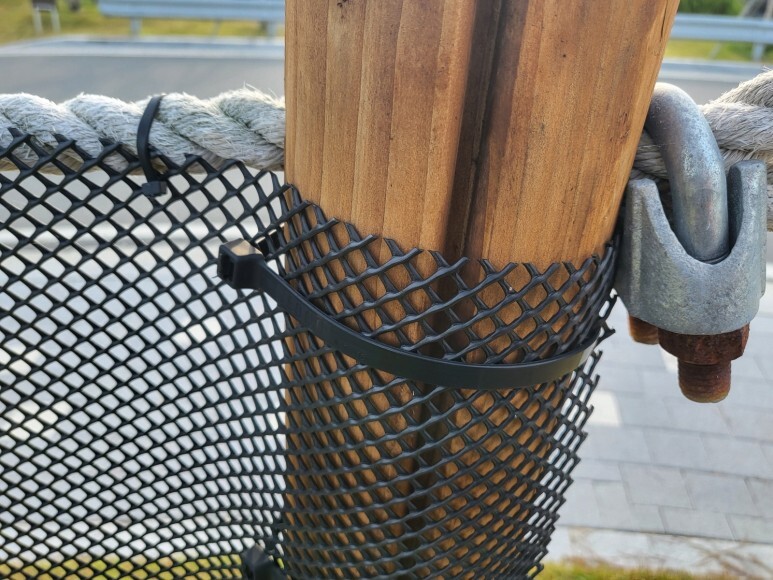 목재 기동 부분의 마감은 긴 케이블 타이로 묶었네요~~