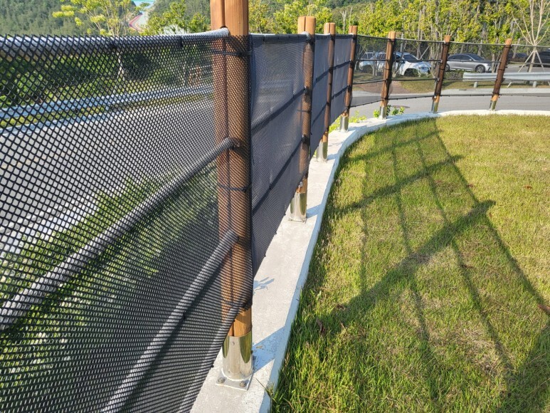 곡선에서는 일반휀스는 딱딱한 느낌이 많은데 PE망으로 설치하니 부드럽게 곡선미를 심어 준것 같습니다.